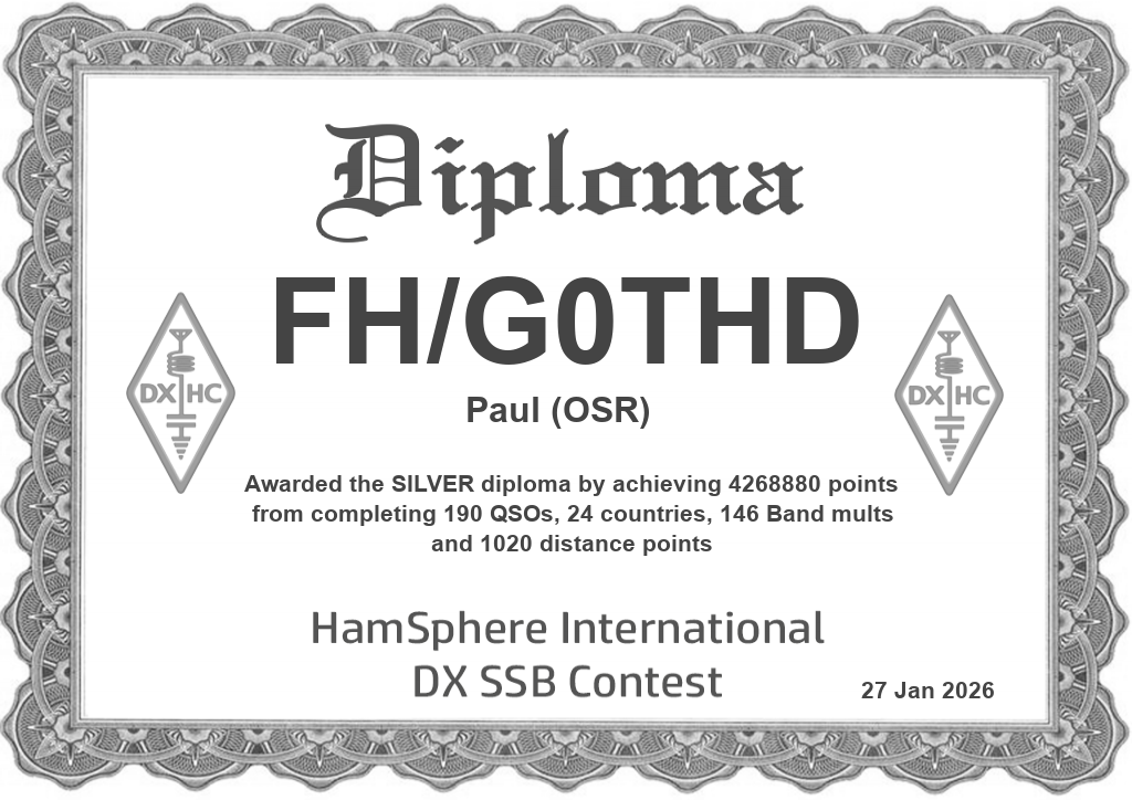 | HamSphere DXHC 80m and 160m Championship 2025 | 2025-12-06 06:00:00 | 2025-12-07 06:00:00 | 2025-12-08 12:00:00 | VIEW | ||||