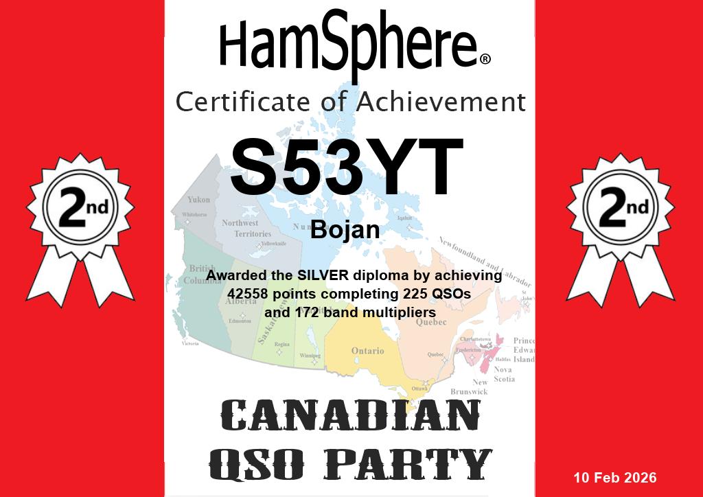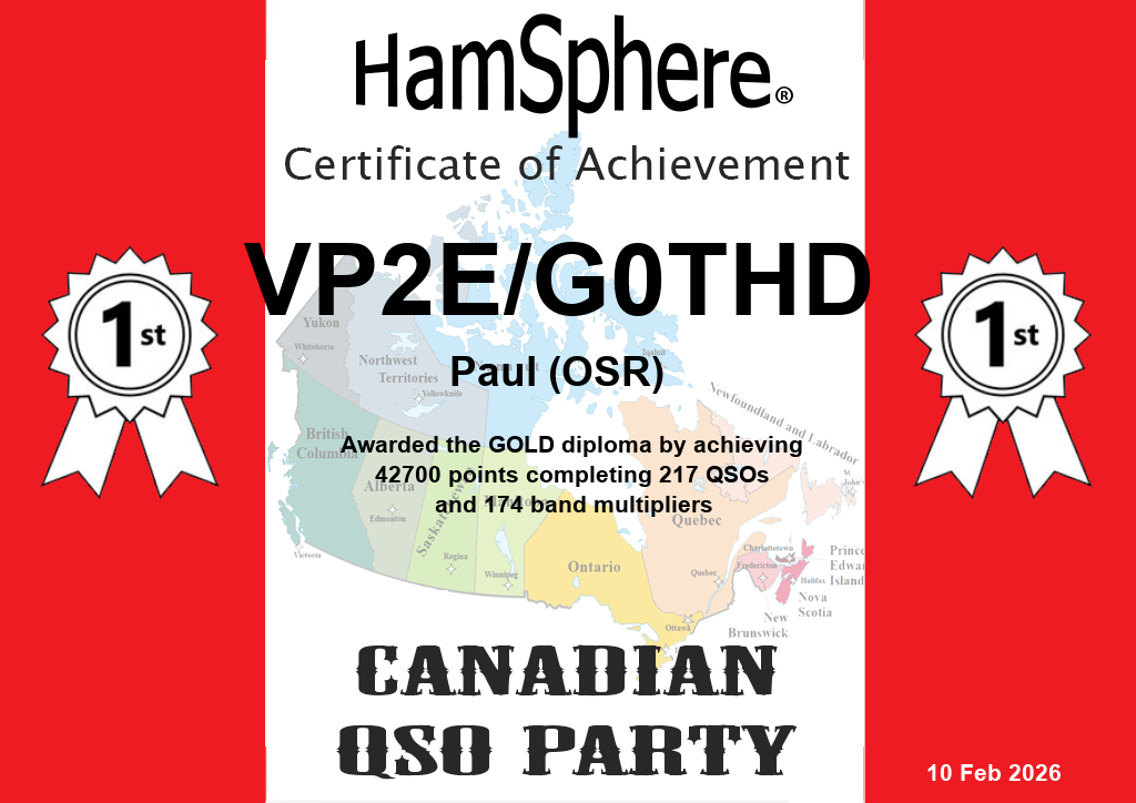 | HamSphere Canadian QSO Party 2026 | 2026-02-07 12:00:00 | 2026-02-08 12:00:00 | 2026-02-10 00:00:00 | VIEW | ||||